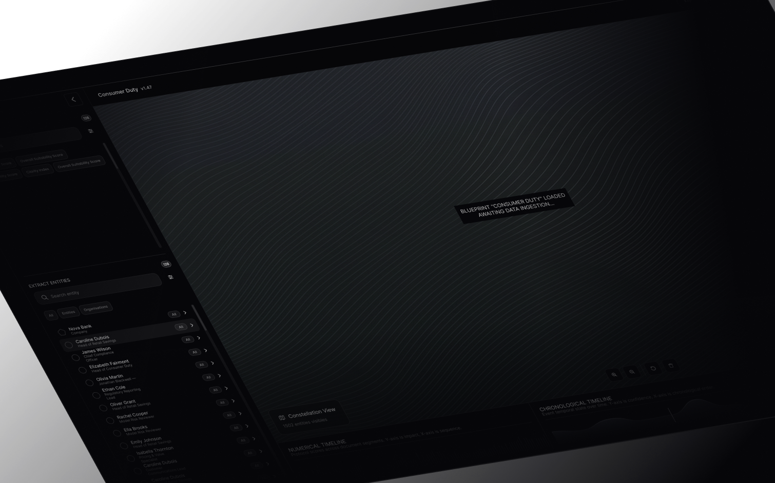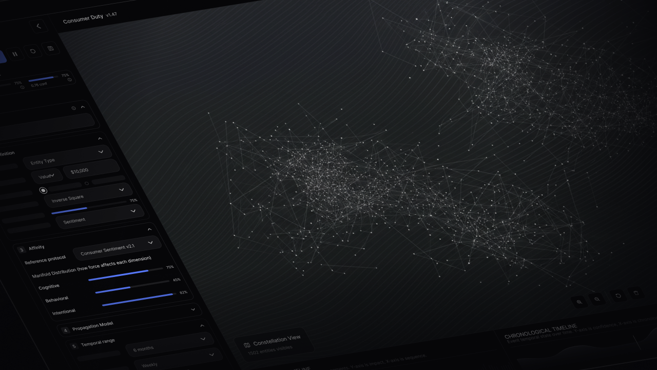 Provenance maps organizations across a three-dimensional manifold. At scale, structure emerges.
